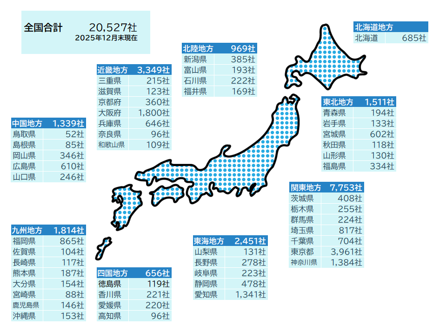 CI-NETの利用を目的として、企業識別コードの登録を受けている企業数は下表のとおりです。